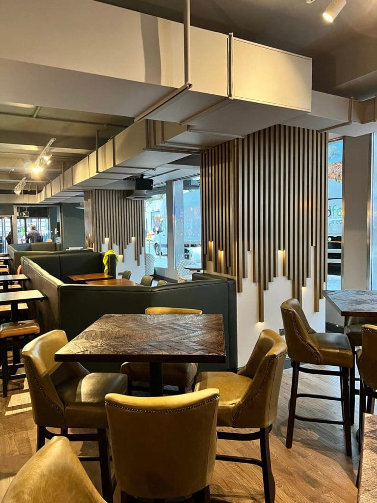 The biggest project challenge however was the very tight timescales. All Bar One officially closed for the Bar/Restaurant Refurbishment to commence on Sunday 17th October. The final handover was scheduled to be on Monday 8th November with the venue to re-open on Wednesday 10th. This meant that there was a large amount of work to be done in a very short space of time.