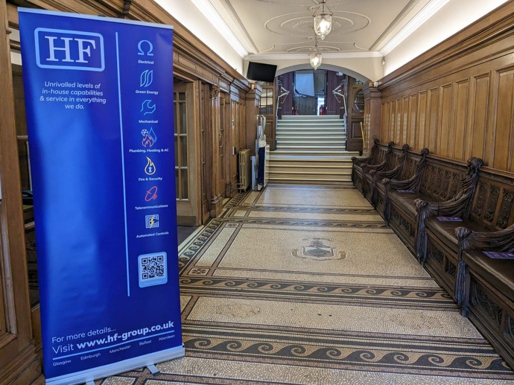 The Trades House in Glasgow’s Merchant City, completed in 1794, is a stunning historic building and a registered charity supporting the people of Glasgow. Hosting weddings, conferences, and other events, it required an upgrade to its electrical wiring and lighting systems. HF’s electricians, with extensive experience in historic building electrical work, were called upon to deliver this sensitive project.